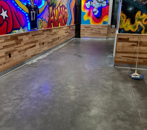 When it comes to durable, attractive flooring solutions for high-traffic commercial spaces, properly polished concrete stands out as the premier choice. Our recent restaurant renovation project showcases the lasting beauty and functionality that skilled concrete polishing can achieve.The restaurant initially had their concrete treated with an enhancing sealer during their opening phase. While this provided temporary shine, the sealer's effectiveness diminished quickly under the demands of daily restaurant traffic, leaving the floor looking dull and tired. Rather than applying another temporary solution, our team was called in to create a permanent, naturally polished surface that would maintain its appearance for years to come.Our professional concrete polishing process utilized a systematic approach with four progressively finer diamond pads. This multi-step refinement process transformed the floor's surface at a microscopic level, bringing out concrete's natural beauty without relying on topical sealers or enhancers. The result is a genuinely polished concrete floor that derives its sophisticated sheen from the refined surface itself, not artificial coatings that can wear away.The newly polished concrete floor provides numerous advantages for the restaurant environment. The smooth, dense surface resists staining and is exceptionally easy to clean – a crucial benefit in food service settings. The enhanced durability stands up to constant foot traffic, moving chairs, and rolling equipment. Additionally, the floor's natural shine adds an elegant, modern aesthetic that enhances the restaurant's atmosphere while providing a safe, slip-resistant surface for staff and patrons.By choosing professional concrete polishing, this restaurant now enjoys a sustainable flooring solution that combines practical benefits with enduring beauty, proving that properly polished concrete is an ideal choice for demanding commercial environments.