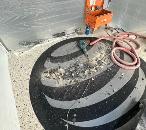 This case study highlights our work for a prominent commercial sports arena that required a sponsor logo change in the main entrance. The project involved removing an old metal logo embedded in the terrazzo floor and replacing it with a new sponsor's logo, all within a tight timeframe before the start of the upcoming sports season.